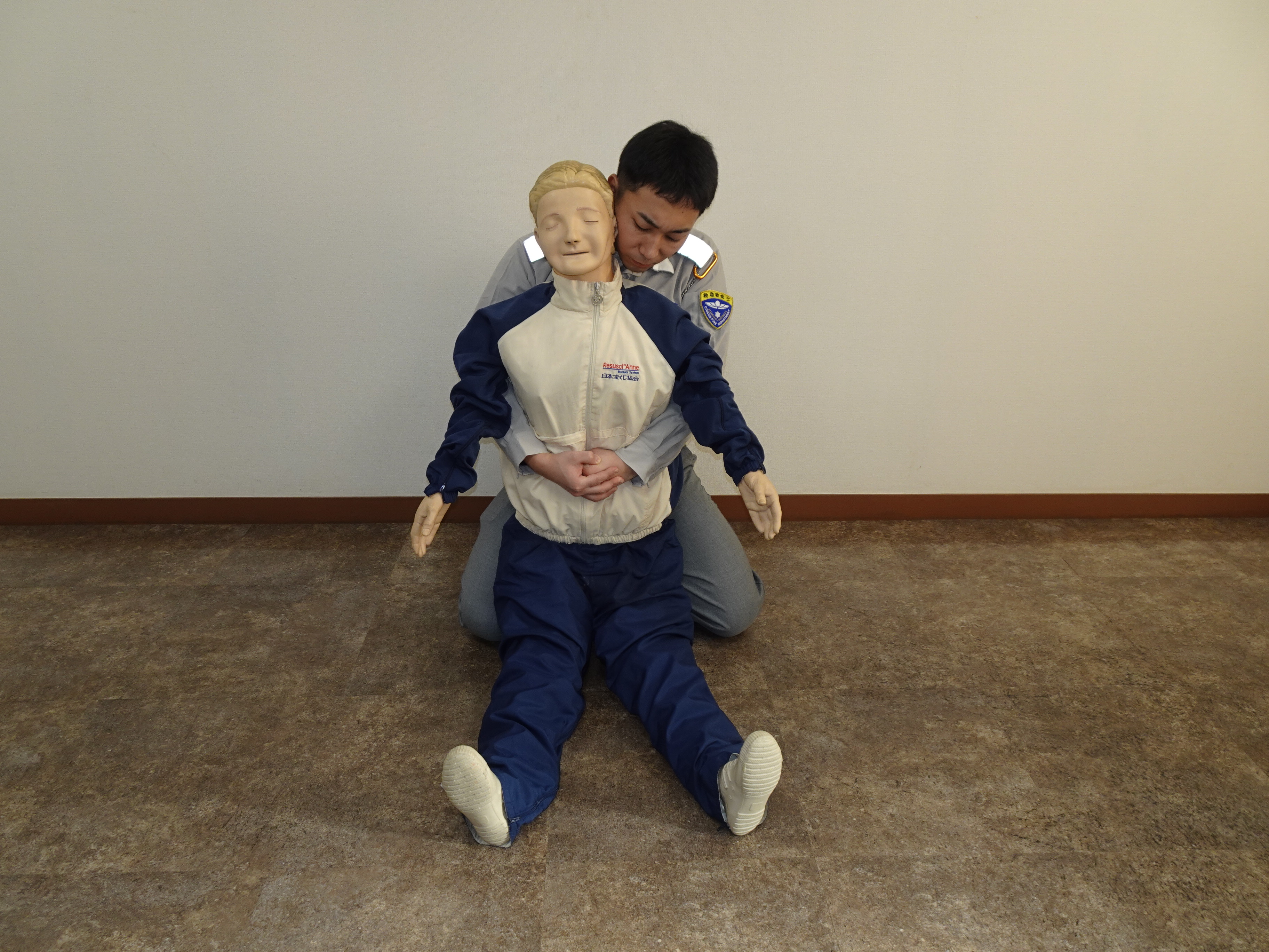 • 腹部突き上げ法を行った場合は、内臓を痛めている可能性があるので、実施したことを到着した救急隊に伝えてください。